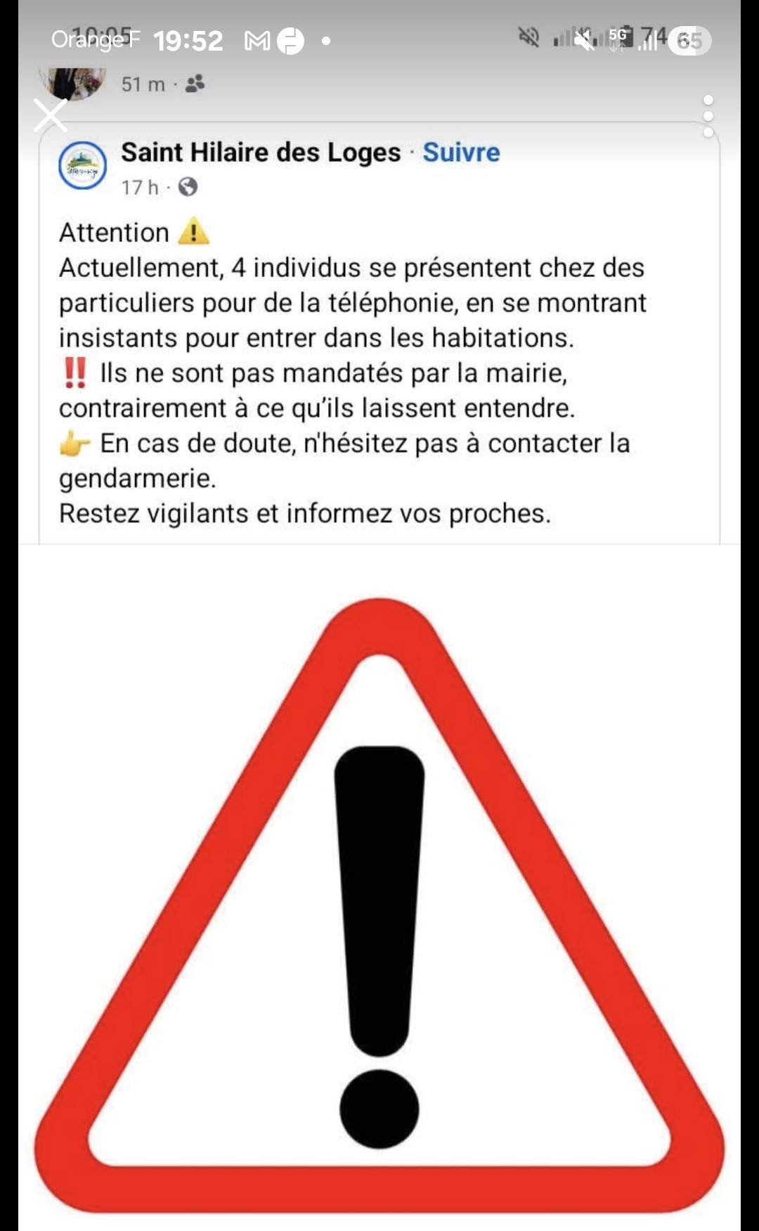 Nous vous faisons suivre une information communiquée par la commune de St Hilaire des Loges.