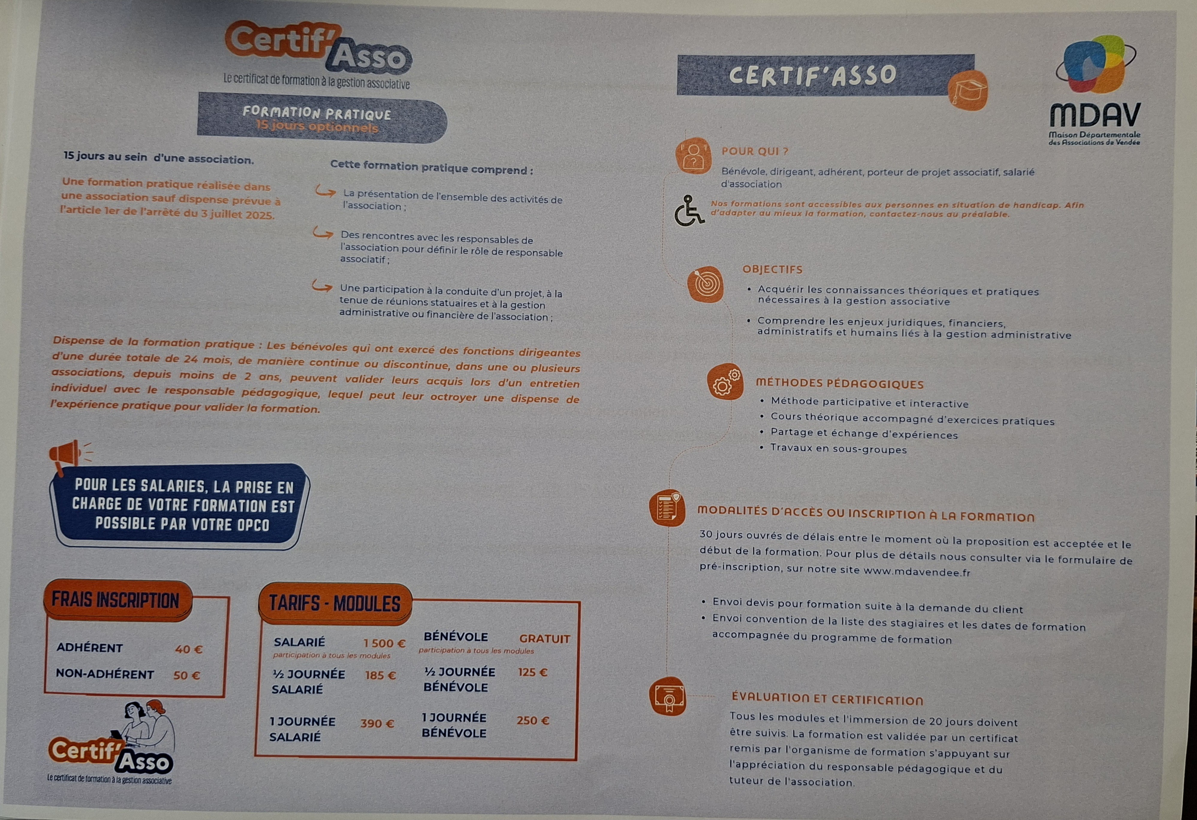 La maison départementale des associations de Vendée coordonne la formation CERTIF'Asso.