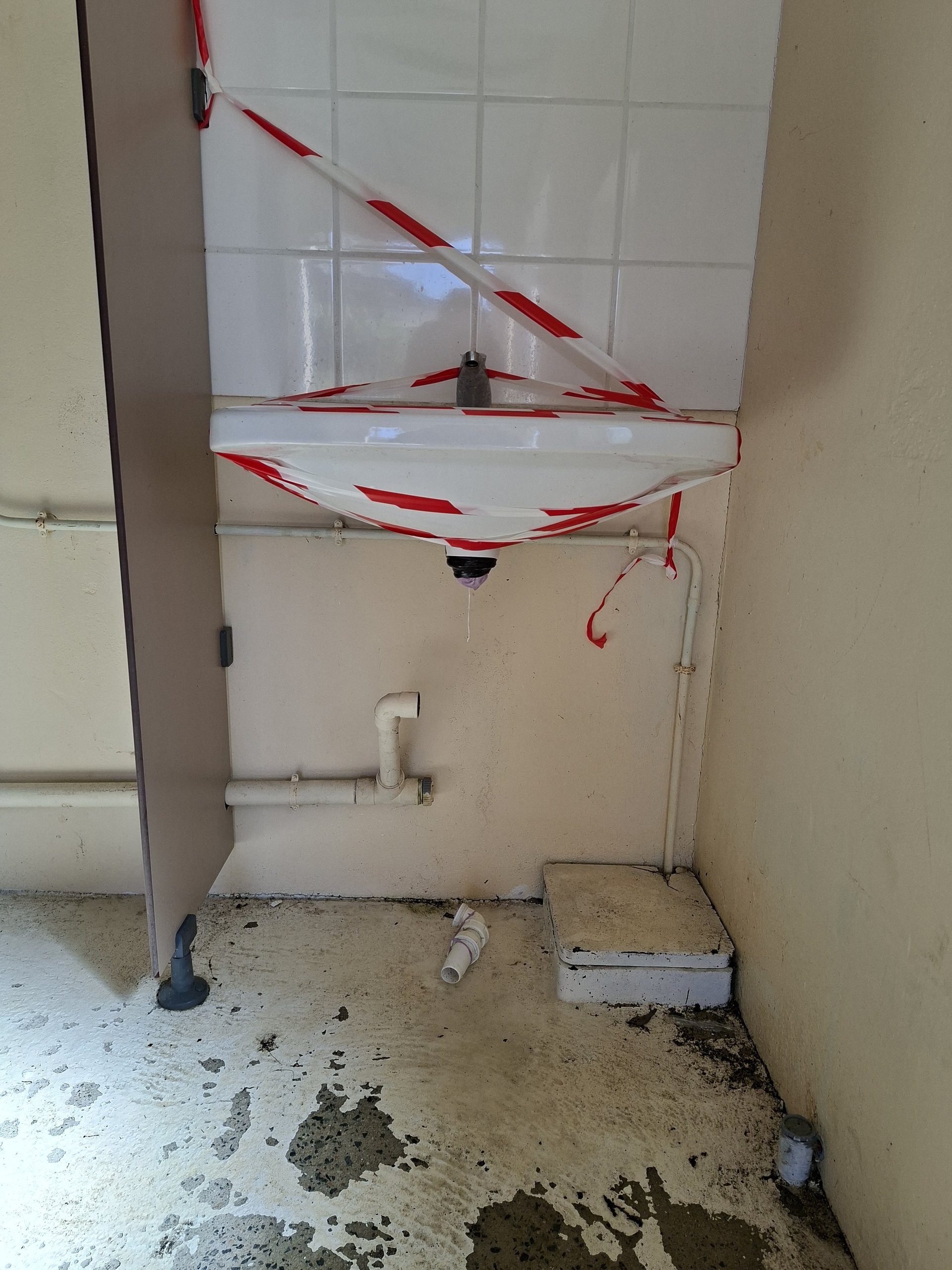 Les lavabos sont naturellement condamnés pour quelques jours.