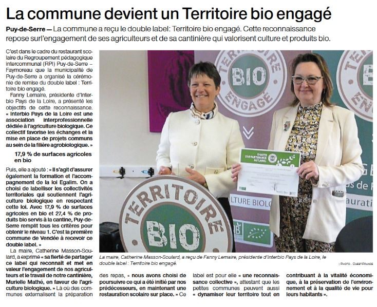 27 mars 2025 La commune devient un Territoire bio-engagé