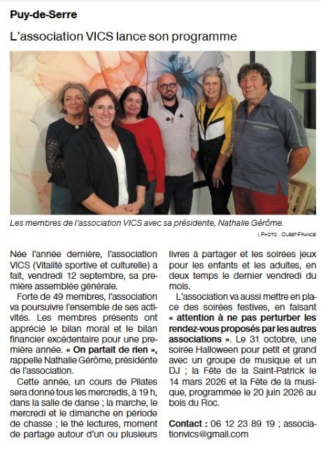 17 Septembre 2025 L'association VICS lance son programme