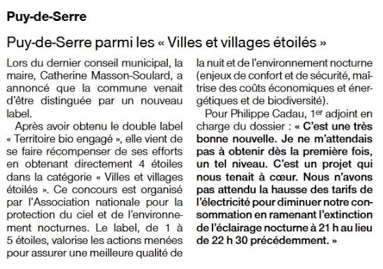 24 Octobre 2025 Puy de Serre parmi les "Villes et Villages étoilés"